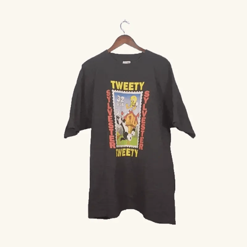 Bring back the nostalgia with this limited edition 1997 Looney Tunes Stamp Collection Graphic Tee! Made from 100% cotton in the USA, this XXL tee features beloved characters Tweety and Sylvester, a collaboration between Looney Tunes and the United States Post Office. Relive your childhood with this timeless piece.