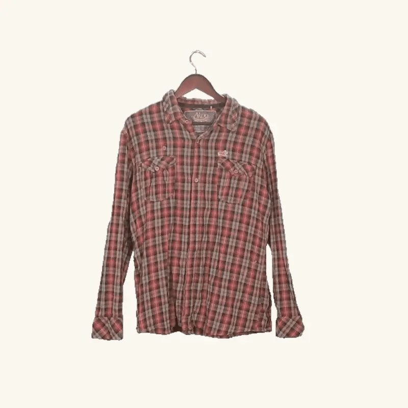 This Akoo Flannel Shirt is available in a size medium and is constructed of 100% cotton. Features include epaulettes and chest pockets. Enjoy the vulture patch as a conversation starter and show off your daring style. With its classic design and quality construction, this Akoo Red Flannel Shirt is sure to make a statement wherever you go.