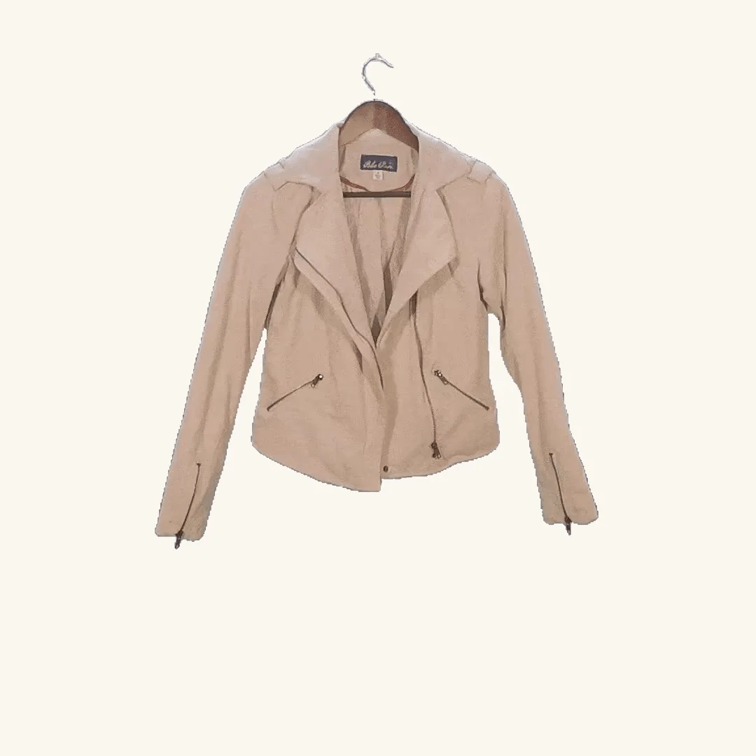 This Blue Rain Pink Suede Jacket is an essential piece for any wardrobe. Designed in a small size for a tailored, streamlined fit, it features soft suede suitable for various weather conditions. This well-maintained biker jacket promises lasting style and versatility for your collection.